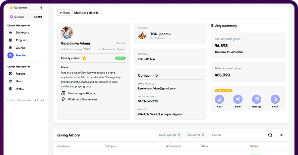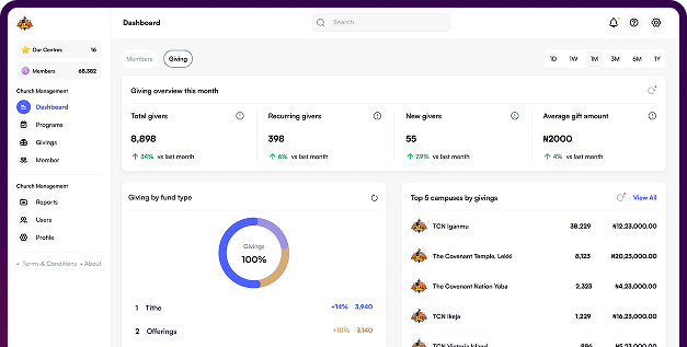 Digital giving and engagement tools that enables churches of any size to leverage on cutting edge technology to offer secured giving and a robust back-end management